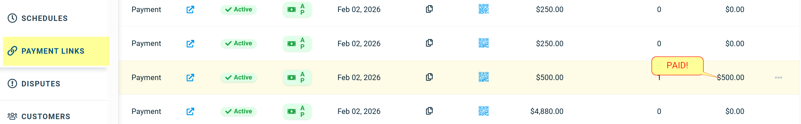 You can click on the icon in the second column to view the link, or copy the link or QR code to resend. The ... menu allows you to edit or deactivate the link.