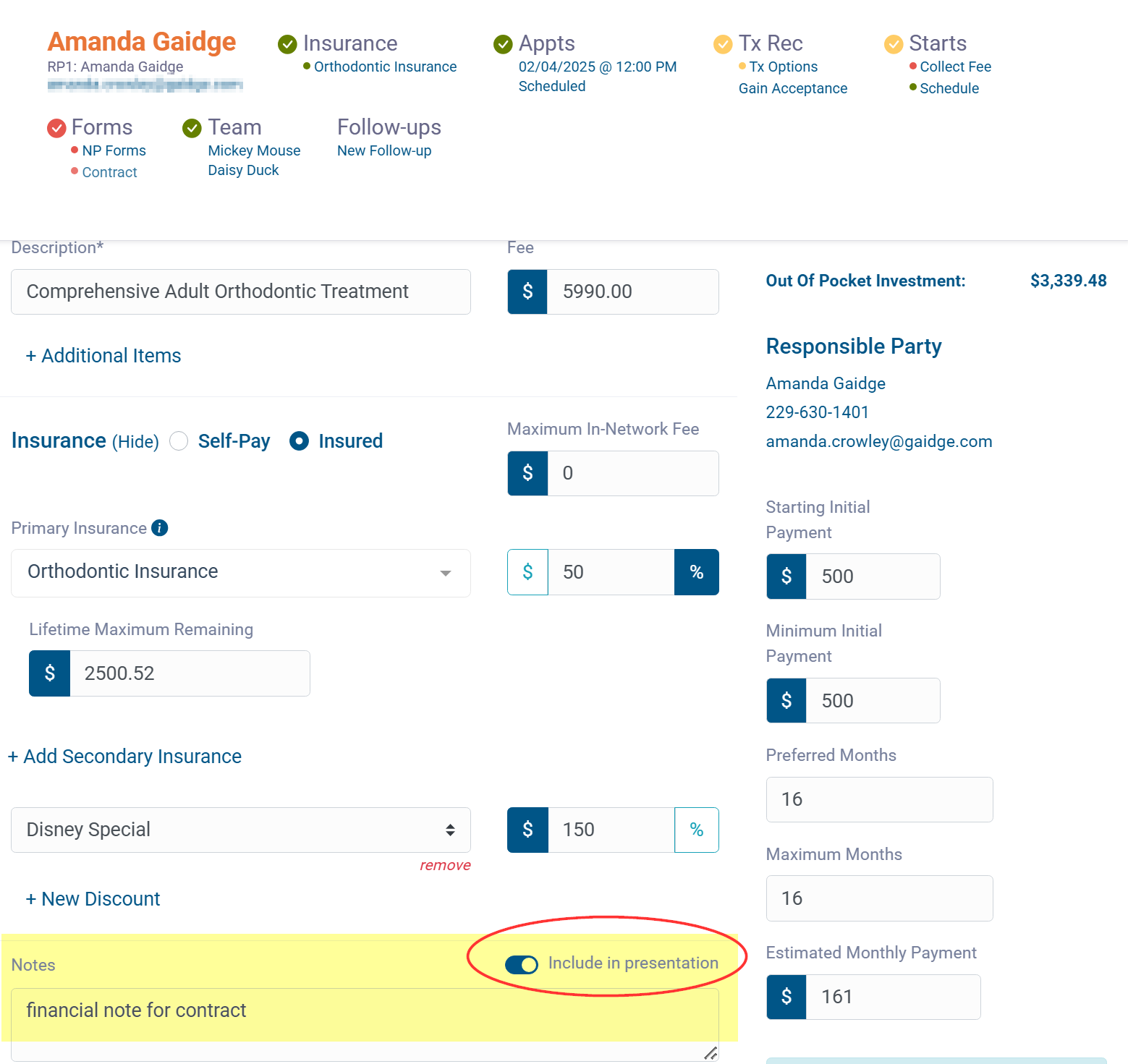 You can now add your treatment notes from the Treatment Options screen to your presentation and contract.