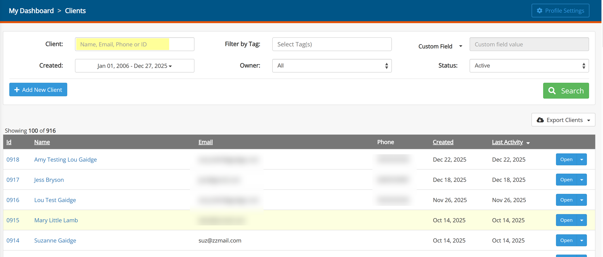 On the Gaidge Forms menu, go to Clients and select (or search for) the patient for whom you deleted the form.