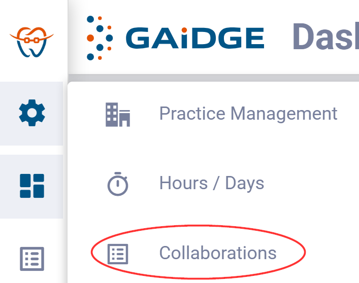 From the Gaidge menu, click on Settings (gear icon) and select Collaborations.