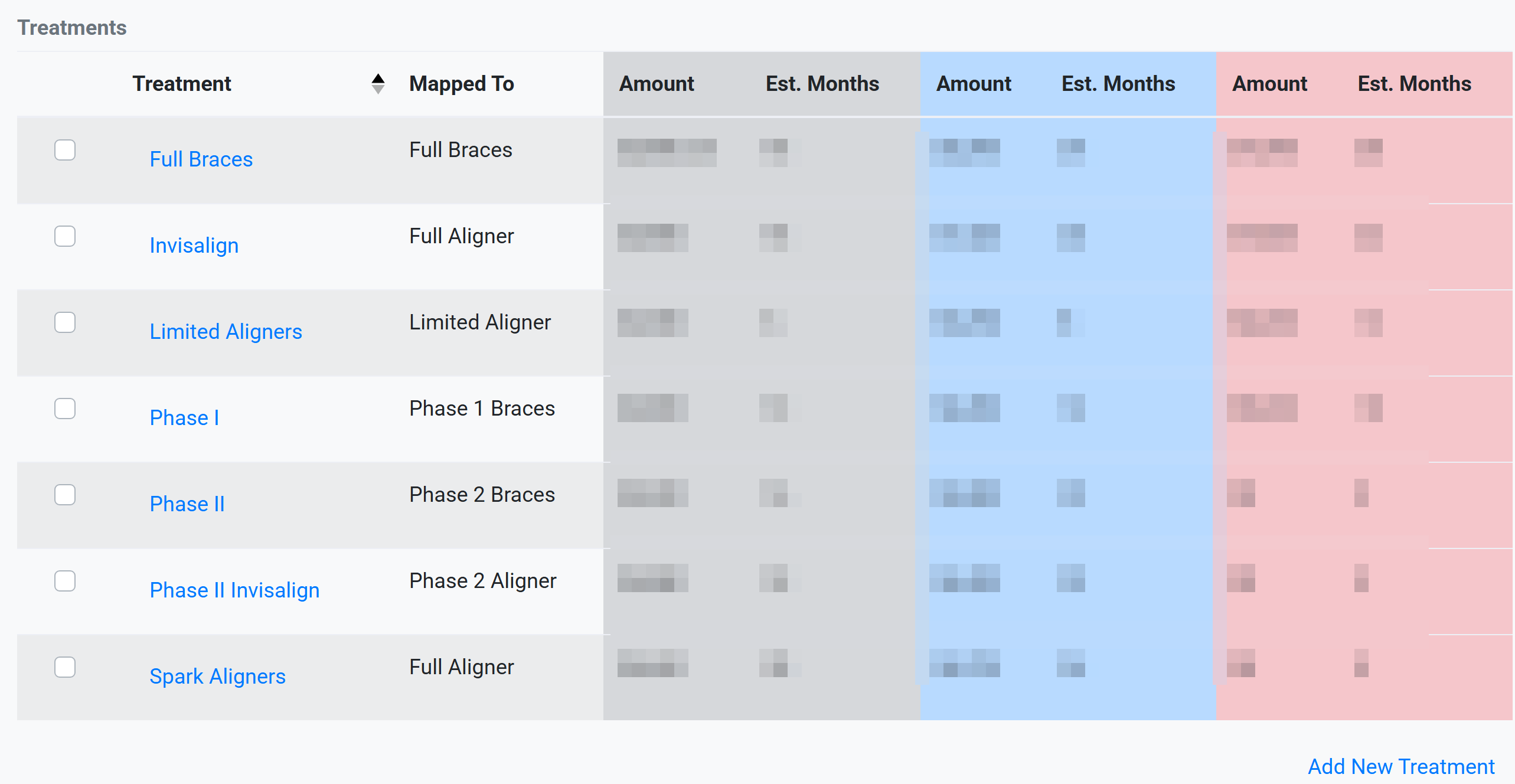 You may have multiple treatments for any treatment type, for example Full Adult, Full Child, Invisalign and Sparks. Click Save.
